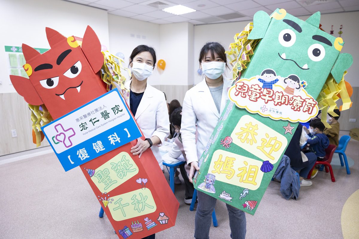 宏仁醫院復健科組長林育萱說,早療課程結合說故事元素,透過手作過程會引導孩子把內心的話表達出來,並增進手眼協調、精細能力,因此治療師都會搭配節日設計活動,例如春節時設計手作春聯,兒童節時也有DIY作品。