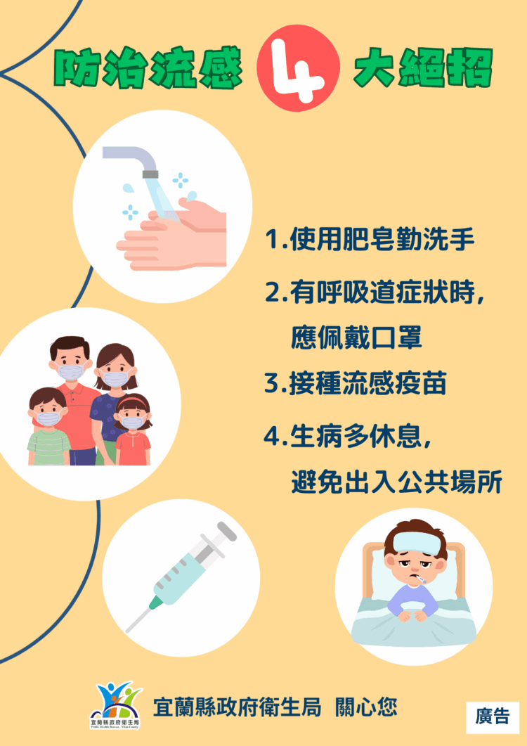 宜蘭縣政府表示,近期天氣早晚溫差大,流感、新冠及其他呼吸道病毒都有社區傳播的風險。參加大型活動時,最重要的是落實個人衛生習慣,包括使用肥皂勤洗手,並避免以手直接觸碰口、鼻及眼睛。若前往人潮擁擠或通風不良的場所,建議佩戴口罩,以減少飛沫傳播的機會。