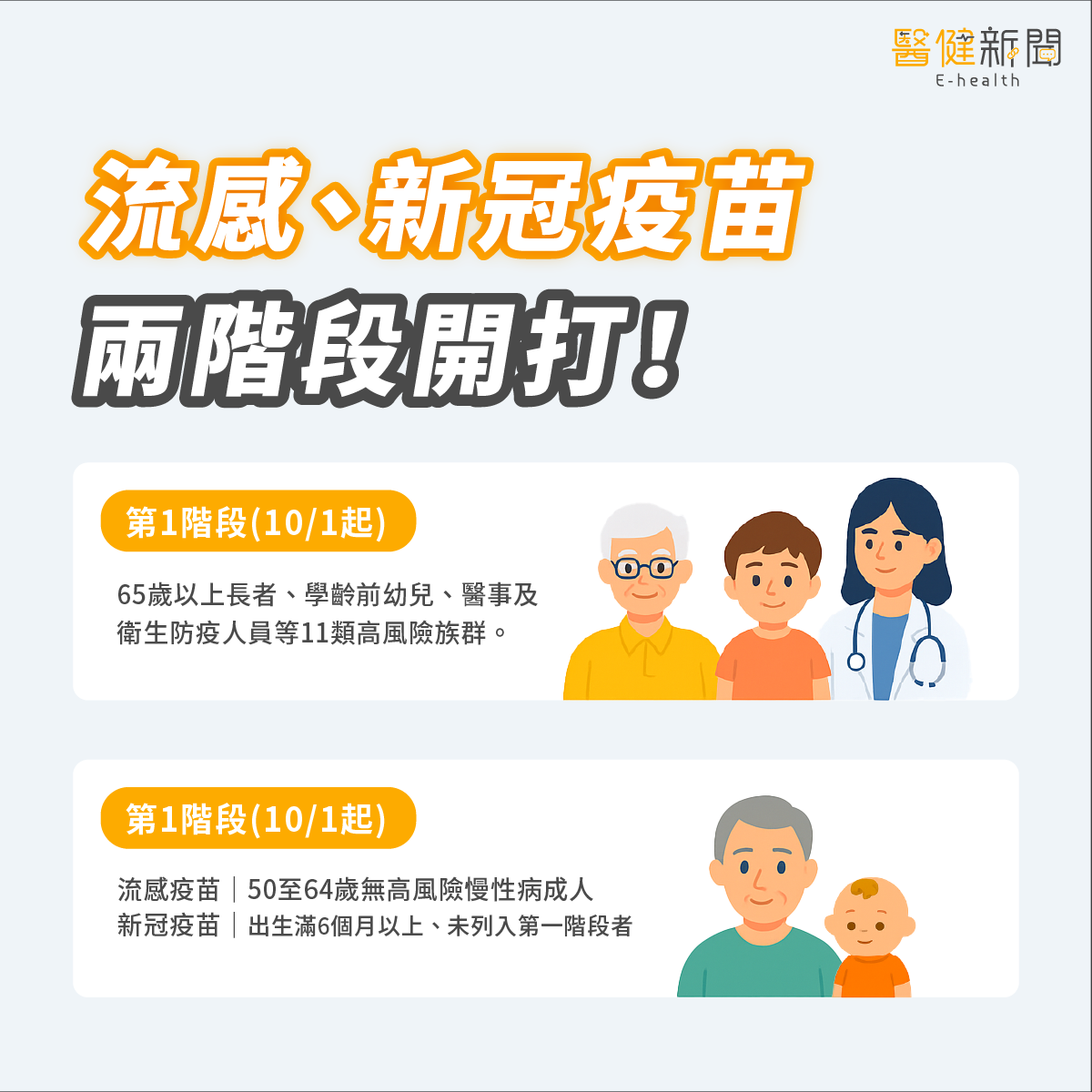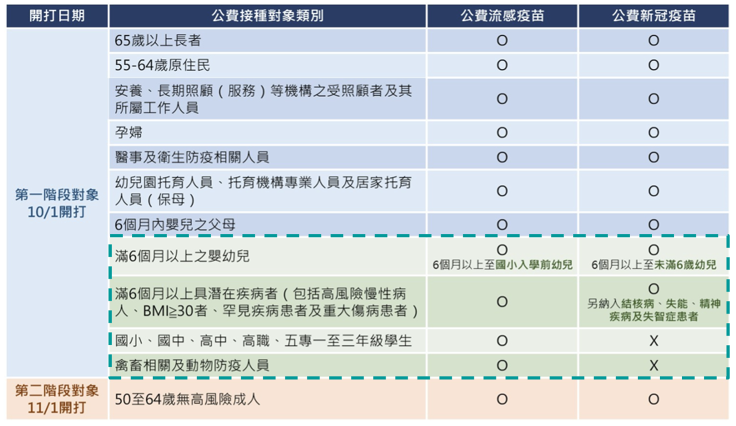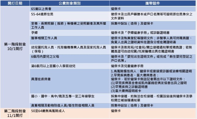 第一階段:10月1日開始,施打對象共有12類對象,包括: