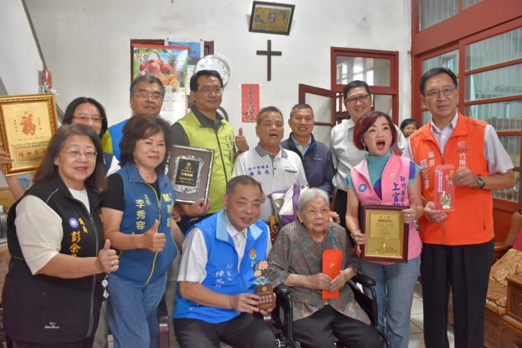 竹東鎮公所表示,設籍或居住在竹東鎮的百歲以上人瑞,今年共12位,公所配合縣府的訪視祝賀行程,送上總統府長者敬老金箔狀、衛福部金鎖片、敬老狀、縣府賀禮及公所禮金6000元、匾額及賀禮,這些收到的長輩都相當開心。