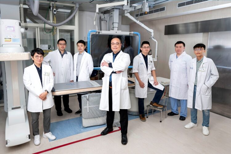 ▲彰基取栓團隊正在導管室中執行緊急手術,與時間賽跑搶救急性腦出血患者。(圖/彰基提供)