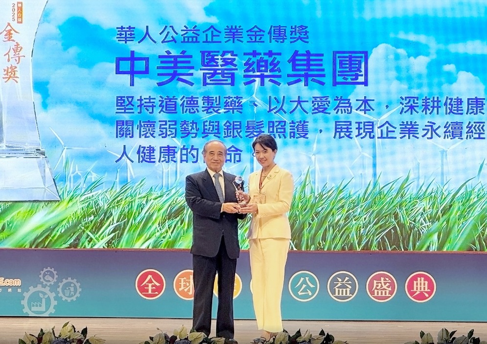 創立近90年的中美醫藥集團,繼2021年獲頒「華人公益大使」與「誠信品牌金傳獎」雙項殊榮後,再次以歷年堅定的公益行動脫穎而出,2025年再度榮獲第8屆「華人公益企業金傳獎」,成為全台唯一榮獲三項殊榮的製藥企業!此獎項每年僅從各產業中嚴選一家代表企業,評審標準嚴謹,被譽為華人企業界的「公益最高榮耀」。