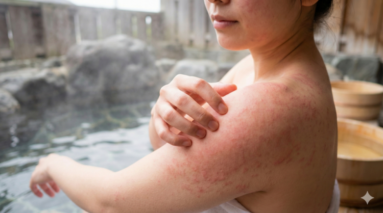 建議水溫:水溫不要太熱,建議選擇接近人體舒適溫度的溫熱水,約 35–40°C。泡湯時間不必太久,只要覺得舒服即可;水溫過高或泡太久,都可能讓皮膚更乾、更癢。